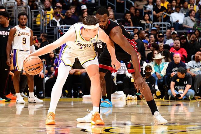 本场比赛中,湖人的先发后场大将奥斯汀-里夫斯(Austin Reaves)的表现依然是相当可靠的。里夫斯全场出场37分42秒,投篮22中9,三分线外14中4,罚球5中4,得到了26分4篮板11助攻的两双数据,还有3次失误和3次犯规,正负值为+7。里夫斯在进攻端虽然手感还是有些一般,但是他还是通过各种方式拿下了大量的分数,而且他在关键时刻也能够展现出自己的大心脏。里夫斯在传球和组织进攻方面的表现同样是非常突出的,他和卢卡-东契奇(Luka Doncic)双双打出了11次助攻的数据,两人都在这方面起到了很好的效果。总体来看,里夫斯还是发挥出了自己在进攻端的特点和价值,他的调整能力和比赛阅读能力大家也是有目共睹的,他的一系列不俗表现也是为球队的胜利做出了巨大的贡献。